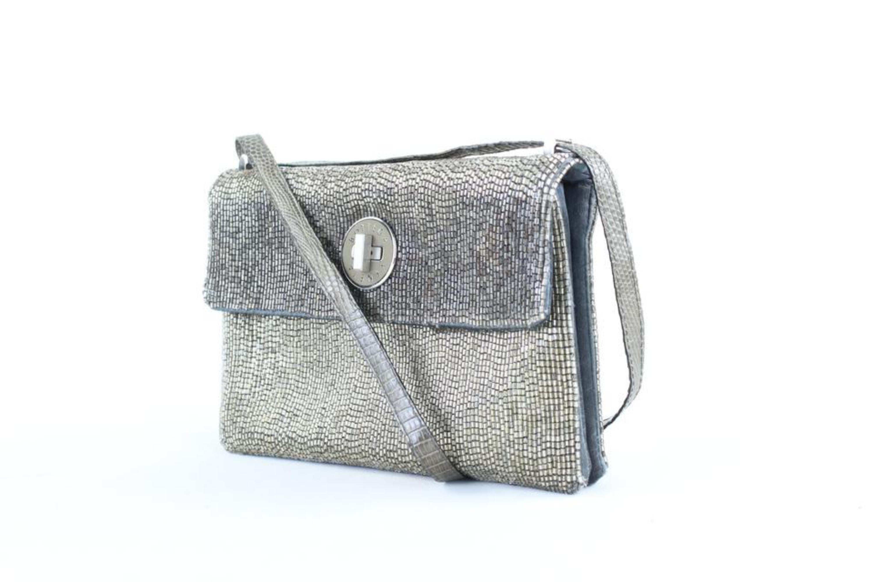Bottega Veneta Silver Sequin Beaded Crossbody Turnlock Flap 1BV824