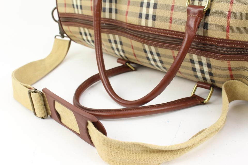 Burberry Beige Nova Check Duffle Bag with Strap Boston Upcycle ready 65b421s