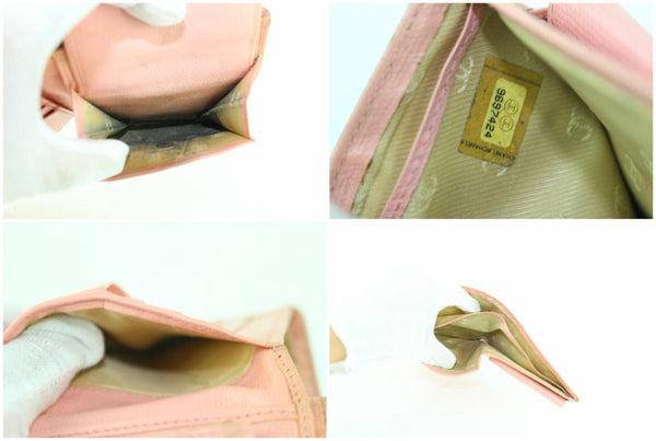 Chanel Caviar Pink Button Line Compact Bifold Wallet 857005