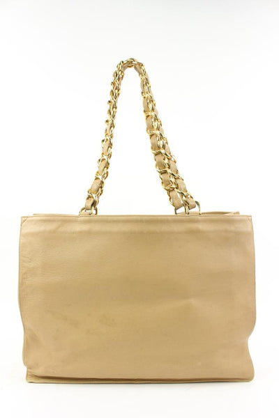 Chanel Jumbo Gold Chain Beige Lambskin Shopper Tote 58ck315s
