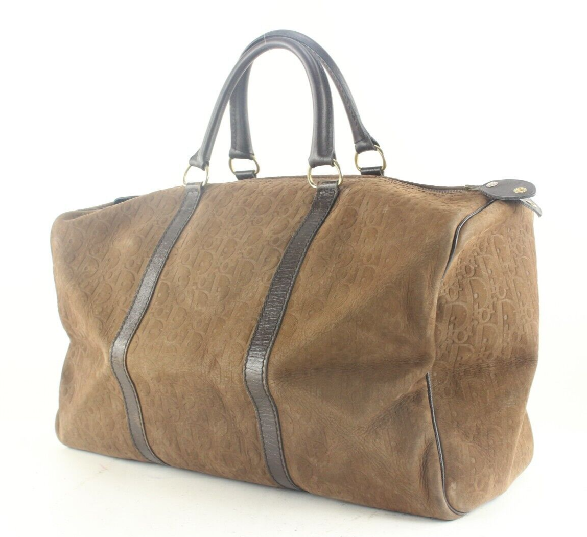 Dior Brown Embossed Nubuck Suede Trotter Duffle Bag 3DD918K