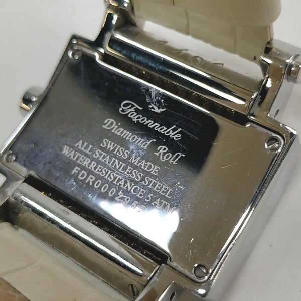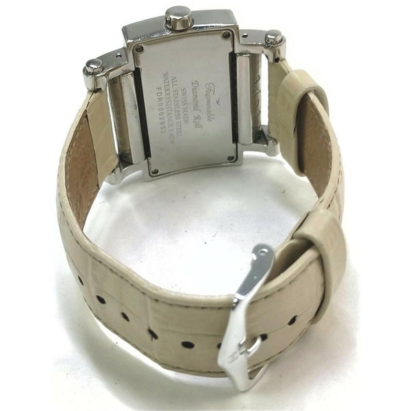 GOOD CONDITION (7/10 or B) Minor marks Case Material : Stainless Steel Band Material : Leather Case Size : 38mm Lug Width : 20mm Gender : Men's Watch Shape : Rectangle Display : Analog Movement : Quartz (Battery) Water Resistance : 50 m (5 ATM) Face Color : Whites Band Color : Cream Wrist Size : 200mm Country of Manufacture : Switzerland