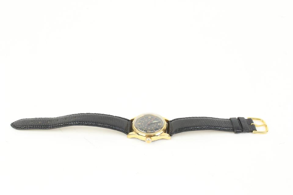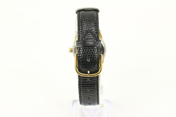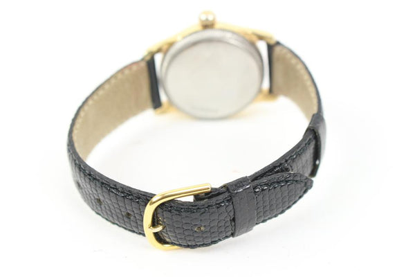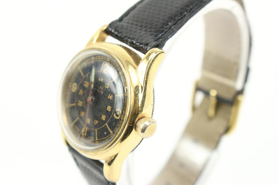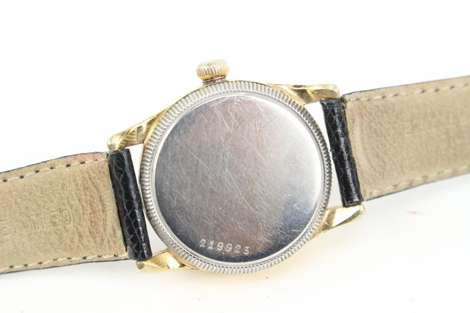 Date Code/Serial Number: 219923 Measurements: Length: 8.5" Width: 1" Height: 8.5" Circumference: 5.5"-7.5" OVERALL GOOD CONDITION ( 7/10 or B ) Yellow gold plated case with a stainless steel bottom The diameter is 30mm across, without the crown and 35mm to lug tips. 17mm lug width. Movement is working but should be serviced. Crown pops out then twists to wind, and pops out further to set time. Signs of Wear: Exterior: Minor Scratches Edges: Very Minor Scratches Band: Non Rolex Hardware: Minor Scratches