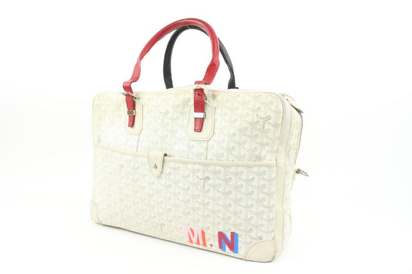 Goyard White Chevron Ambassade MM Briefcase Business Bag 12gy222s