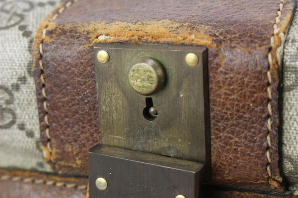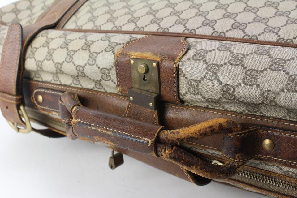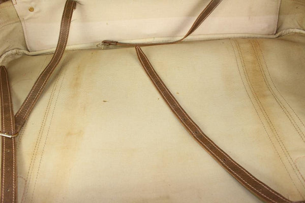 Made In: Italy Measurements: Length: 26" Width: 7" Height: 18" Handle Drop: 2.5" OVERALL FAIR CONDITION ( 6/10 or C ) Accessories: Lock (No Key), Luggage Tag (Broken) Signs of Wear: Exterior Canvas: Minor Rubbing, Very Minor Marks Exterior Leather and Trim: Some Fading, Some Scuffing, Some Peeling, Some Cracks Interior: Very Minor Marks Handle / Straps: Some Scuffing, Some Fading, Minor Cracks Corners: Some Scuffing Edges: Some Scuffing, Some Cracks Hardware: Some Tarnish, Minor Scratches Odor: Minor Storage