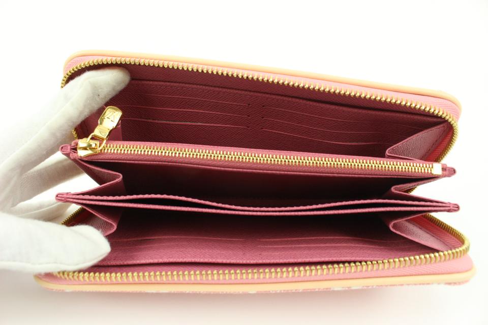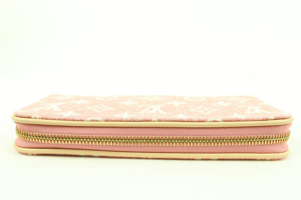 Louis Vuitton Pink Rose Monogram Denim Zippy Wallet Long Zip Around 31lv217s