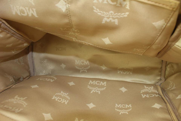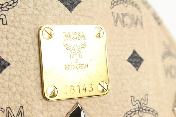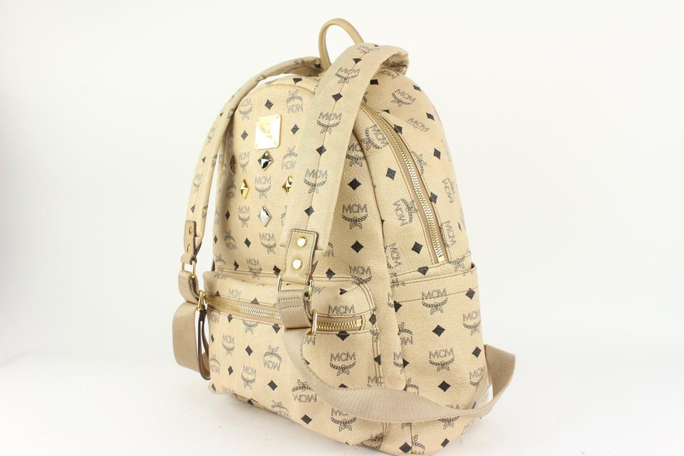 MCM Beige Monogram Visetos Logo Medium Studded Stark Backpack 921mcm73