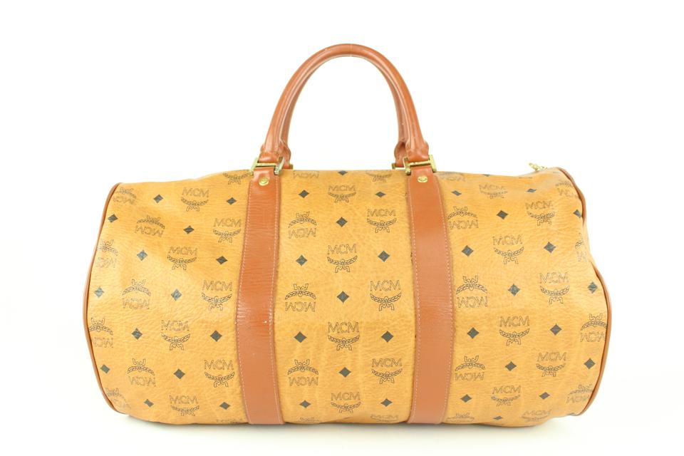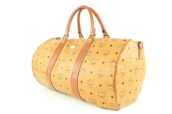 MCM Large Cognac Monogram Visetos Boston Duffle Bag 107m41
