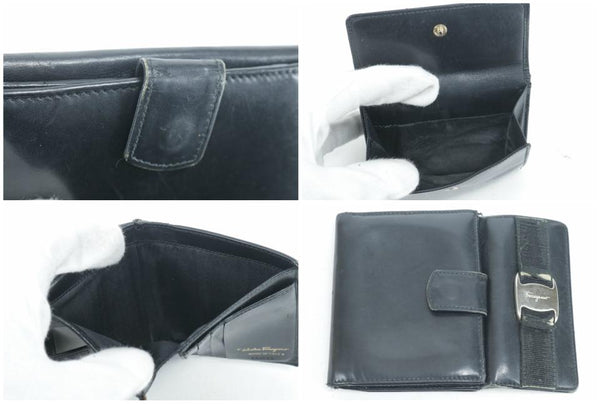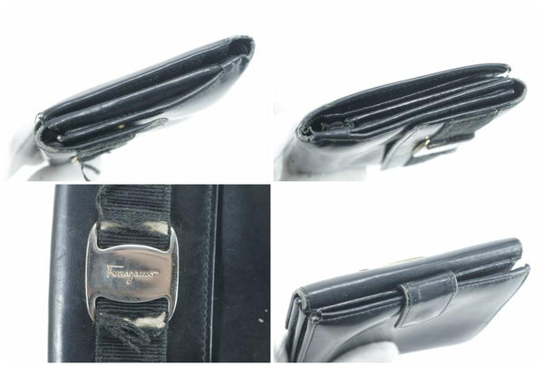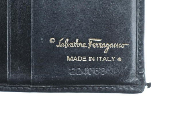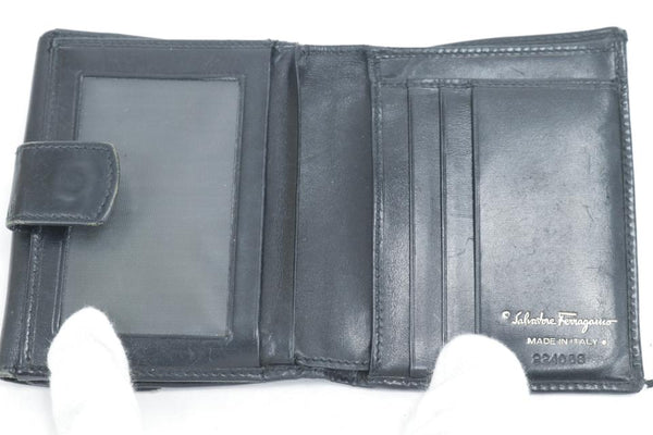 Salvatore Ferragamo Black Leather Gancini Logo Compact Wallet 16FK0113