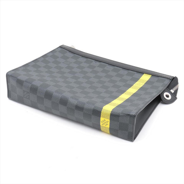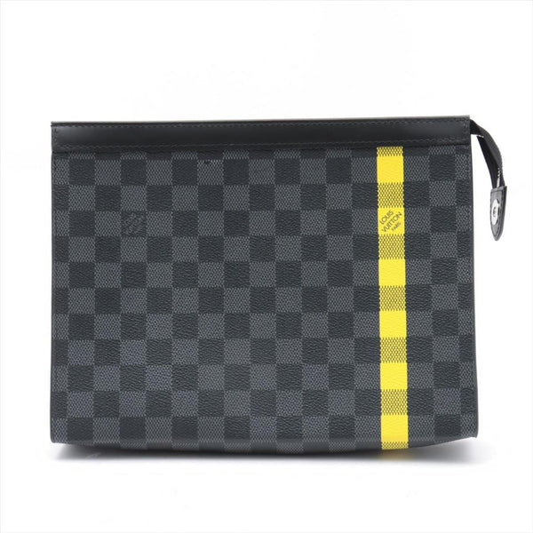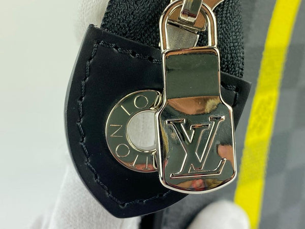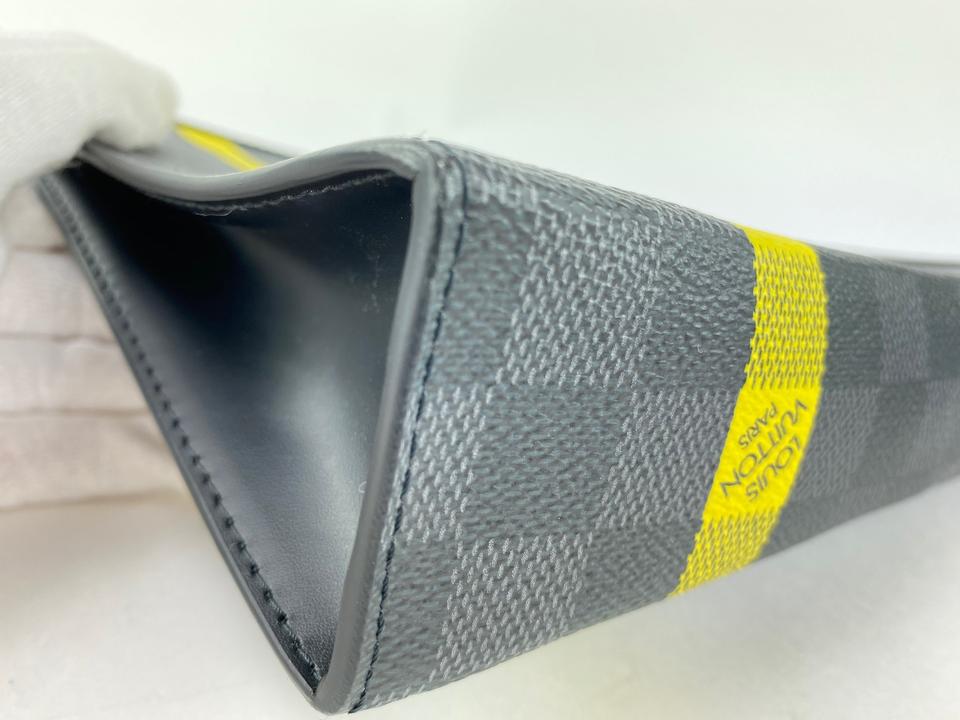 Louis Vuitton Damier Graphite Pochette Voyage MM Zip Clutch Yellow Stripe 862045