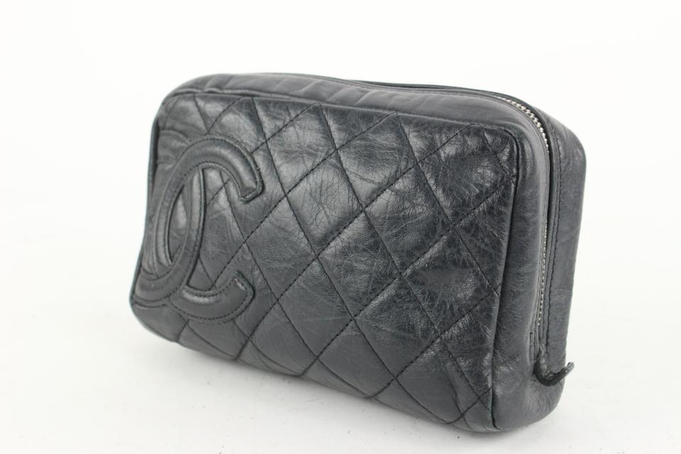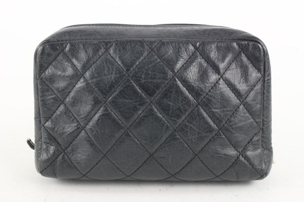 Chanel Black Quilted Leather Cambon Ligne Toiletry Case Cosmetic Pouch 112c4