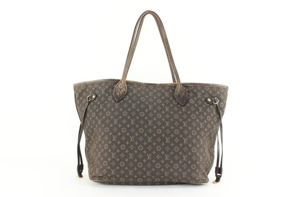 Louis Vuitton Dark Brown Fusain Mini Lin Monogram Idylle Neverfull MM Tote 8lk830s